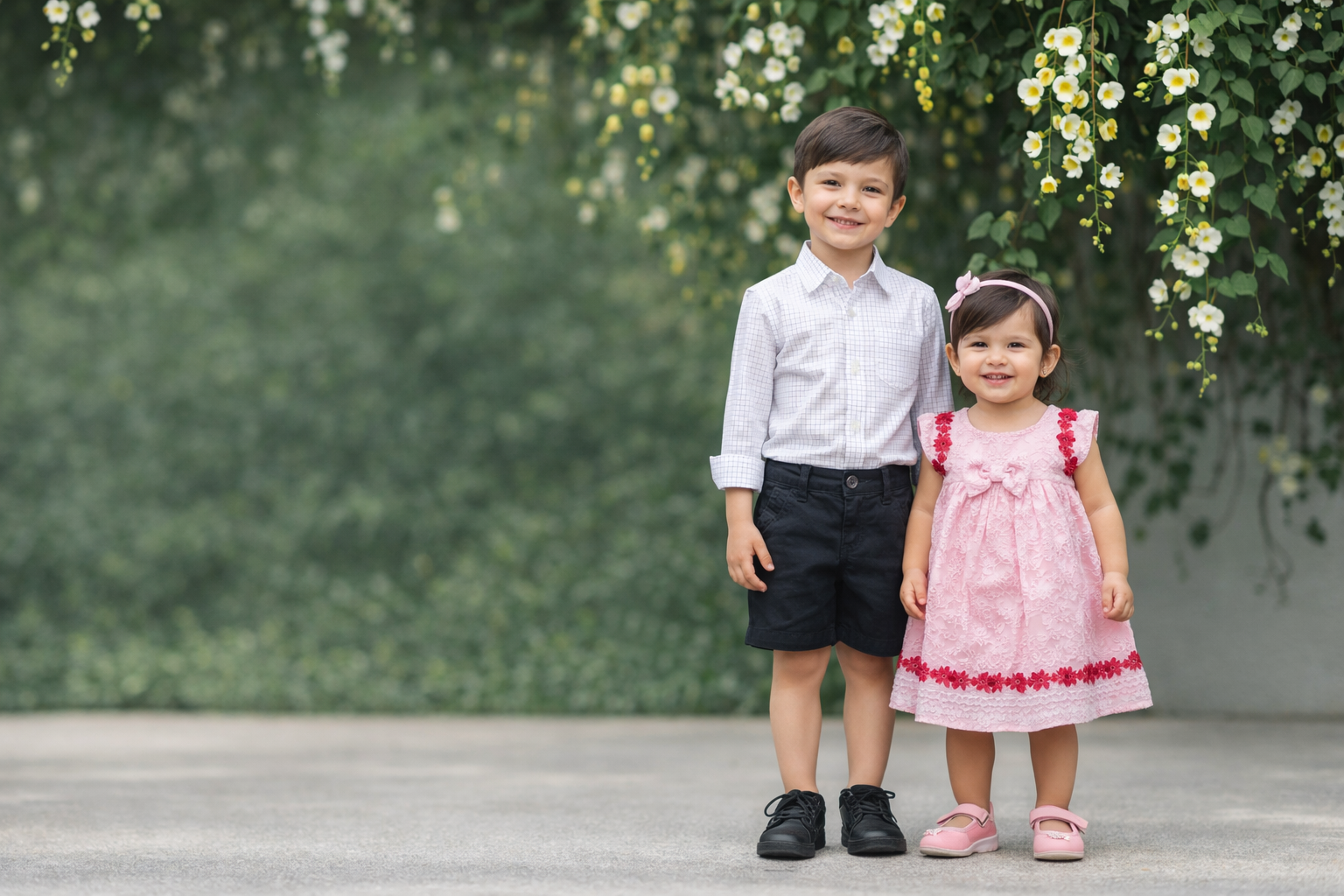 28059 Strap Sleeves Girls Cotton Frock in Black & White big flowers with Inner
